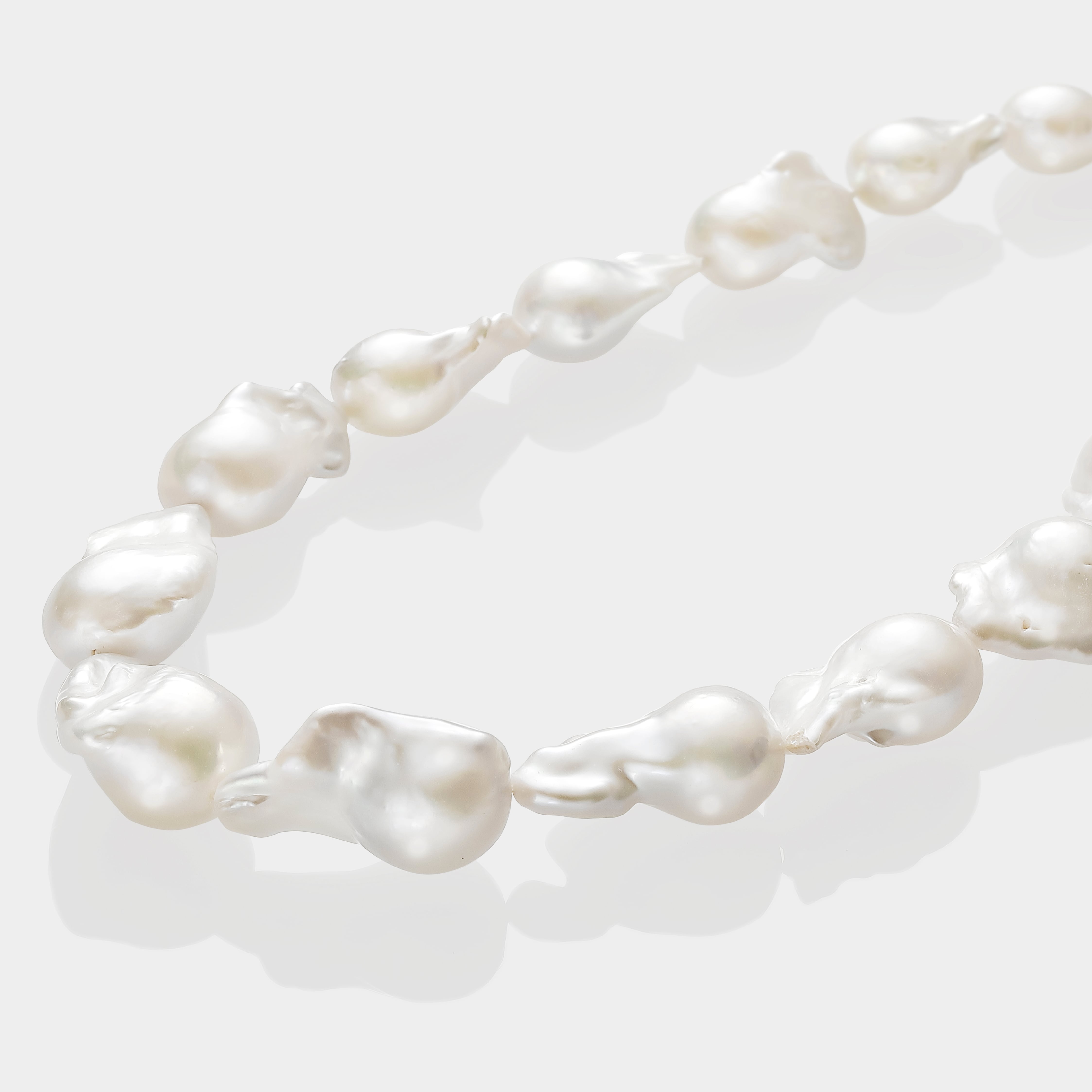 バロックパールをボリュームたっぷりにあしらった上品なネックレス。ショートレングで仕上げ投入するだけで顔まわりをパッと明るく演出してくれる。