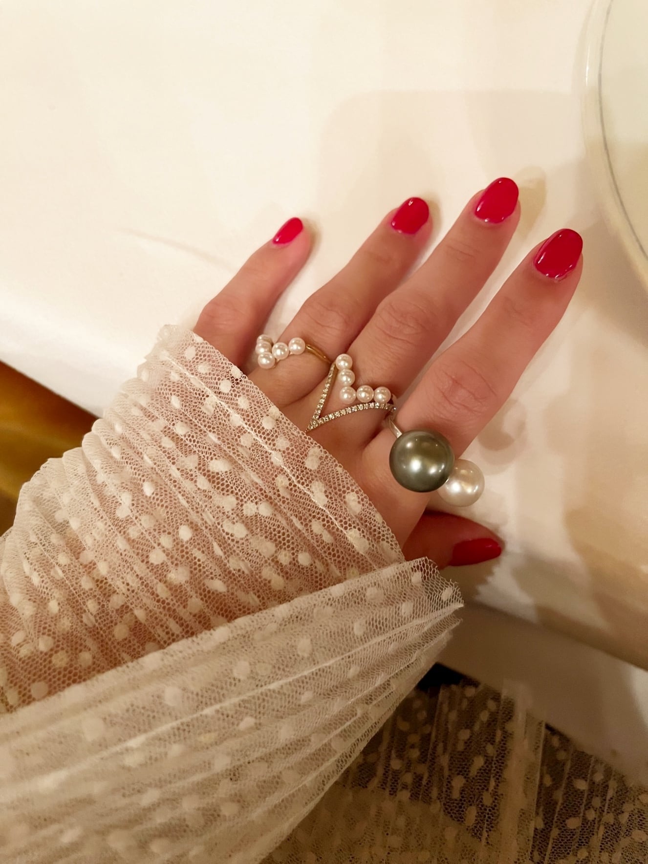 またパールはあこやパールを使用しておりテリがよく手元を美しく見せてくれます。